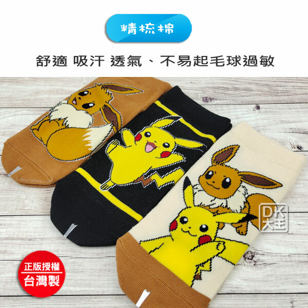 寶可夢直板襪 精梳棉童襪 皮卡丘/伊布/胖丁/傑尼龜/小火龍/夢幻/妙蛙種子/卡比獸/卡達鴨 |